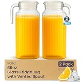 Kühlschrankkrug 1, 7L Glas Wasserkrug mit Deckel (2er Pack) – Glaskrug Geriffeltem Glasdesign & Griff für Kühlschrankfach & den Täglichen Gebrauch mit Belüftetem Ausgus