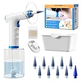 Ohrenschmalz Entferner Ohrenreiniger Sicherheit Ohrenkerzen Ohrreiniger für Erwachsene Ohrenspülung Elektrischer Ear Cleaner Ohrendusche Ohrreinigungsset mit 10 Ohr Tipps ur Wattestäbchen, Blau Weiß