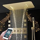 SWHC Duschgarnitur mit Regendusche Ohne Armatur Unterputz Duscharmatur Gold Musik Duschsystem mit Thermostat, 6 PCS Massage Seite Spray, Handbrause, 64 Farben RGB