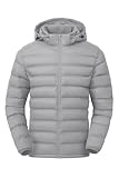 Gopune Leichte Daunenjacke für Herren, abnehmbare Kapuze, wasserabweisend, Puffy, Winter-Daunenjacken für Schnee, Skifahren, Reisen, Hellgrau, Large