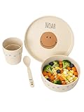 wunderwunsch personalisiertes LÄSSIG Kindergeschirr Set (Teller, Becher, Schälchen, Löffel) ohne Melamin, BPA-frei, für Spülmaschine und Mikrowelle/Dish Set (Smiley)