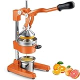 Cast Iron Citrus Juicer, Extra Large Commercial Grade Manual Hand Press with Large Pressure Plate, Heavy Duty Countertop Squeezer for Fresh Orange & Lemon Juice (Orange)