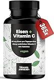 Eisentabletten hochdosiert mit Vitamin C- 365 Tabletten - Eisenbisglycinat/Eisen hochdosiert mit Vitamin C, Eisen Vitamine C vegan & produziert in Deutschland - Laborgeprüft