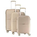 Geographical Norway Saopaolo - Kofferset 3-teilig | Leichte Hartschalenkoffer aus ABS | 360 drehbaren Rollen | Teleskopgriff | Zahlenschloss | Handgepäck, Mittel & Groß | Innenfächer (Champagner)