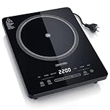 Arendo - Kochplatte Induktion 2200 Watt - Induktionskochplatte - 9 Leistungsstufen - 120-2200 W - mobil - 1 Induktionskochfeld - Sensor Touch Bedienfeld - Timer - Überhitzungsschutz