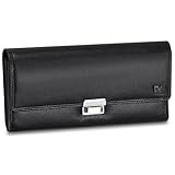 FOMAX Kellner Geldbörse aus hochwertigem Nappa Leder - großes Kellnerportemonnaie, RFID-Schutz, Profi Gastro Taxi Geldbörse, Echtleder Schwarz