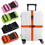 4 Stück Kofferband Auffällig, Gepäckband Koffer, Gepäckgurt, Koffergurte, Koffer Spanngurt, Kofferbänder, Koffers Gurt, Koffergurt Set, für Reisen und GeschäFtsreisen (Orange, Grün, Schwarz, Rosa)