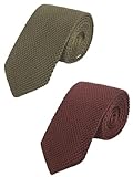 WANYING 2 × Herren 7cm Schmale Strickkrawatte 2, 75 Zoll Gestrickte Narrow Krawatte Retro Sporty Casual Büro Basic für Gentleman - Einfarbig Braun Olive-Grün