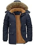 TOMEEK Winterjacke Herren Winter Parka Warm Fleecejacke Winddicht Outdoorjacke Mantel Lang Gefüttert Steppjacke mit Abnehmbar Kapuze und Taschen Winterparka(Marineblau, L)