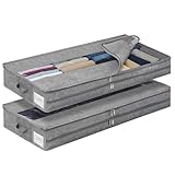 Lifewit Unterbett Aufbewahrungsbox Unterbettkommode, Faltbare Kleideraufbewahrungstasche mit Deckel für Bettdecken, Kleidung, Unterbett-Kleiderschrank, Grau, 65L, 2 Stück